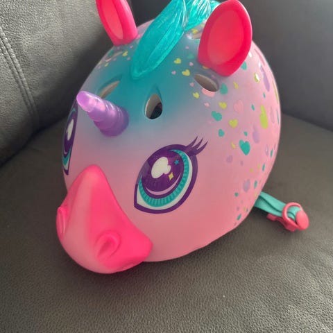 Säljer två fina barnhjälmar från KED med roliga motiv (enhörning och häst). Båda har integrerad LED-lampa bak för extra synlighet i mörker.