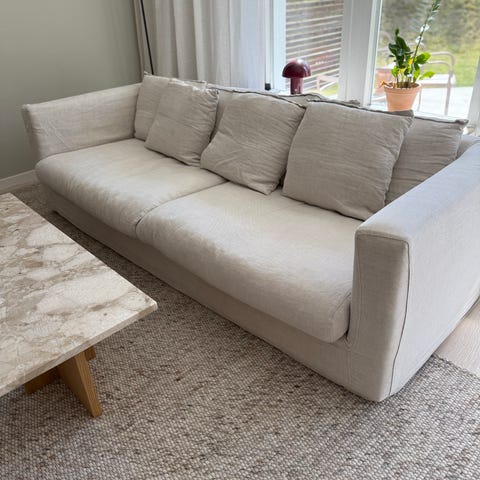 Säljer vår stilrena och rymliga 4-sitssoffa i beige från SoffaDirekt. Köpt 2023 och i mycket fint skick – perfekt för dig som vill ha en stor, bekväm och modern soffa till ett bra pris.