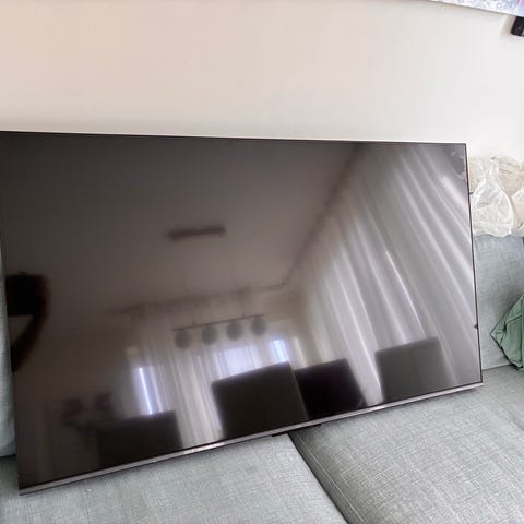 Philips 49" TV med svart skärm och silverram. Har flera anslutningar på baksidan, bland annat HDMI.