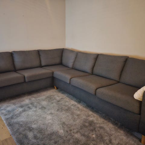 Mio hörnsoffa mörkgrå, använd men fin.
