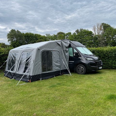 Mycket fint uppblåsbart förtält till husbil. Lätt och snabbt att resa med Kampas Air Pro‑system, stabil konstruktion och slitstarkt Weathershield™ Pro‑material.