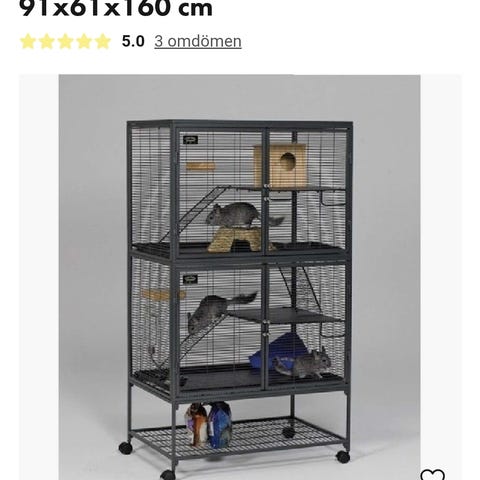 Stor gnagarbur i två våningar med flera hyllplan och ramper. Lätt att komma åt genom dörrarna fram och ovanpå. Fattas hyllplan. Men finns mängder med varianter att köpa separat i tex djuraffärer.