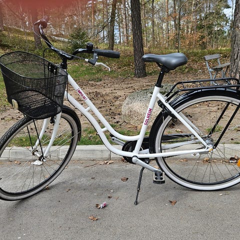 Vit Crescent stadscykel för kvinna med 28" hjul och ramstorlek M 51cm. Utrustad med pakethållare, kedjeskydd och navväxel bak.