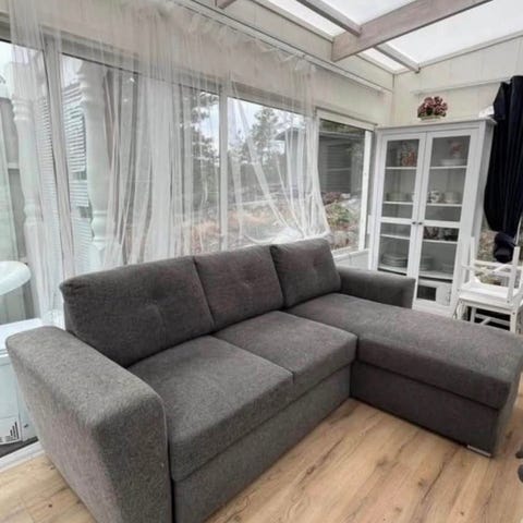 Bäddsoffa schäslong VEJLBY beige tyg.