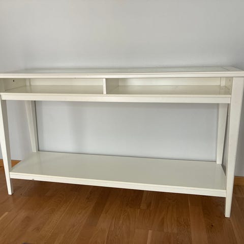 Skåp med glasdörrar samt belysning. Fler hyllplan finns och ingår. Säljes i befintligt skick.