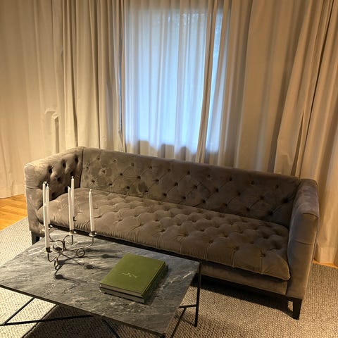Sammetssoffa Crossover mellan Chesterfield och Boudoir