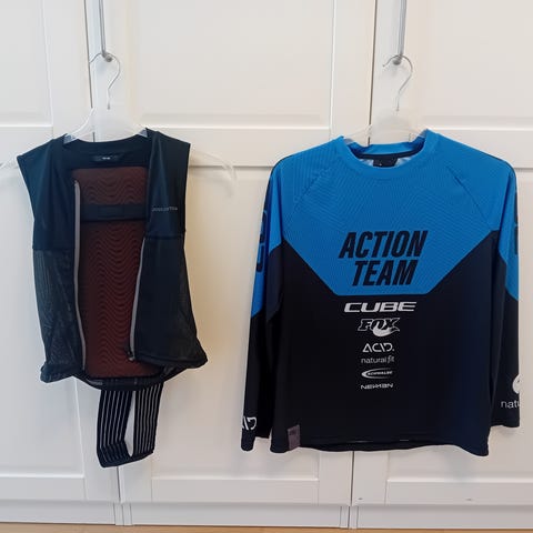 Skyddsjacka från Zandona i svart med gula detaljer och inbyggt rygg- och bröstskydd.