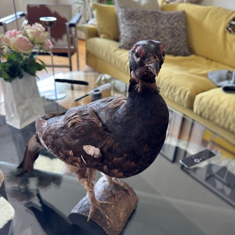 Den är fint monterad på en bit björkträ och utgör en riktigt fin inredningsdetalj för dig som gillar natur, jakt eller kuriosa. Den är i ett fint begagnat skick (kika på bilderna för att göra din egen bedömning).