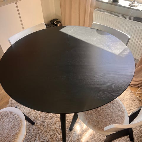 Runt matbord från IKEA ”LISABO” i svart askfan’er 105cm i fint skick