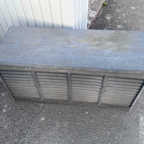 Grå dynbox i konstrotting. Vattentät klädsel inuti som kan stängas med dragkedja.