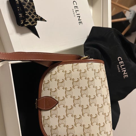 Svart Celine handväska som även fungerar bra som jobbväska/datorväska - en Mac passar utmärkt i mittenfacket som stängs med blixtlås.