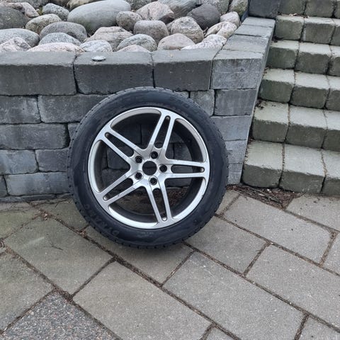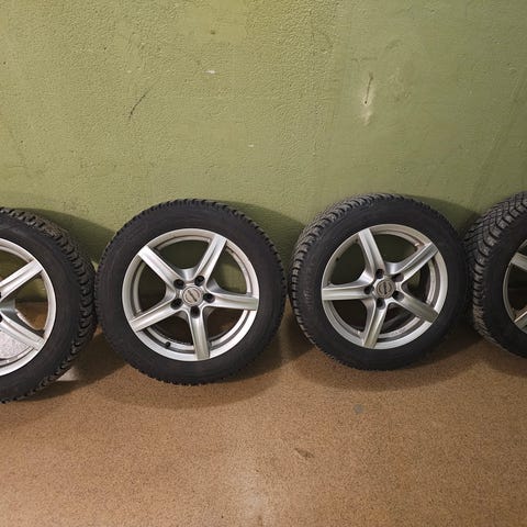 Däcken har suttit på en hyundai i30. Däcken går en säsong till. Fälgarna är ganska slitna men funkar för den som behöver ha tag i ett set med fälgar
