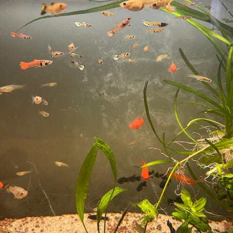 Fiskarna är kring 10-15cm, men efter 4-6 veckor i karantän kommer de förhoppningsvis ha lagt på sig lite extra storlek.