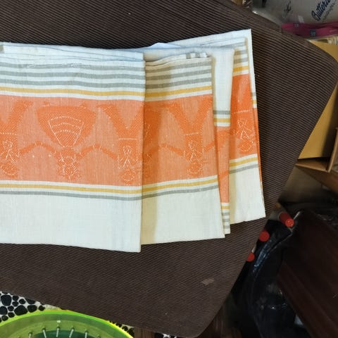 6st väldigt snygga retro kökshanddukar i linne med broderade monogram