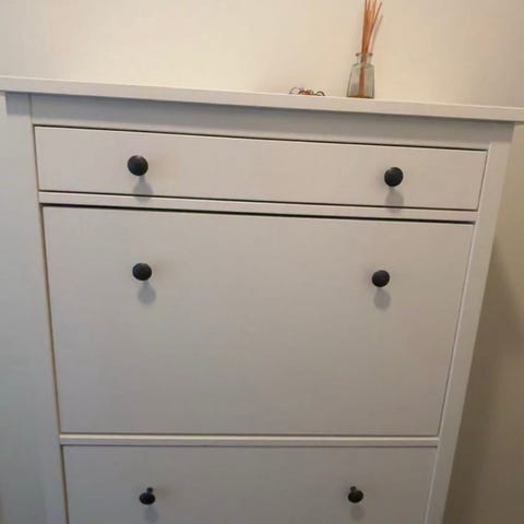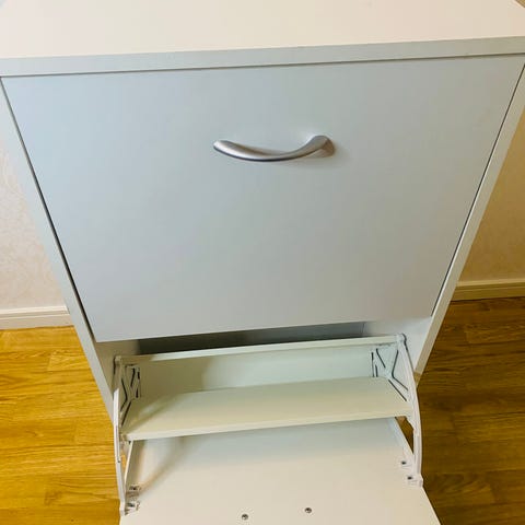 Ommålad i en gröngrå silkesfinish (lackfärg). Finns småskavanker, se bilder. Men fullt fungerande skick. Avrundade hörn så man slipper dom vassa kanterna.