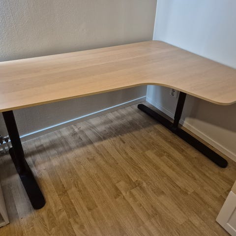 Skivan är 160*110 cm och passar i vänsterhörn. Höjden varierar elektriskt och passar stor som liten.