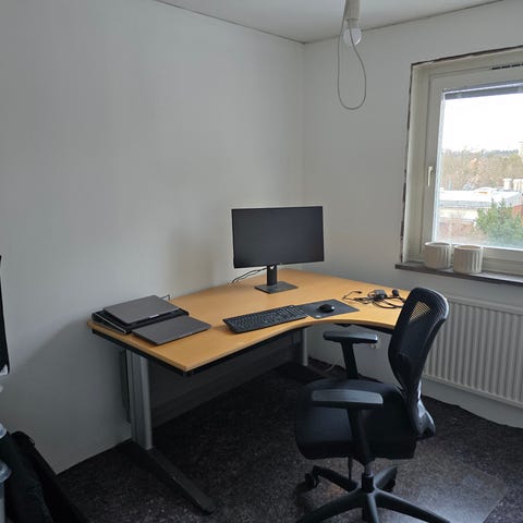 Mycket bra Ikea kontorsbord som är höj- och sänkbart. Stor arbetsyta.