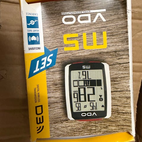 Helt ny, förpackning har varit öppnad. Plastfilm på cykeldatorn sitter kvar