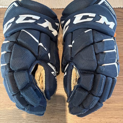 CCM FT370 hockeyhandskar i storlek 14" / 36 cm, marinblå med vita detaljer. Skön passform med vaddering runt hand och fingrar.