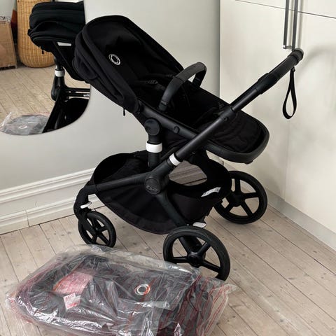 Bugaboo barnvagn i svart med matchande åkpåse (för kallt och varm bruk) och sittdel. I priset medföljer även svart babyskydd med adapter som kan sättas på vagnen och flera delar i turkos som syns på bilderna. Även regnskydd samt sittdel och liggdel finns. Delar anpassat för vinter och sommar samt suffletter i två färger.
