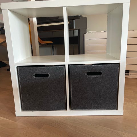 Säljer en Kallax 2×2 hylla i vitlaserad ekeffekt, i fint skick.