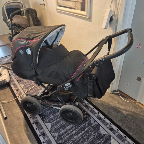 Vagnen är i bra skick och fungerar som den ska. Perfekt för både stad och promenader.