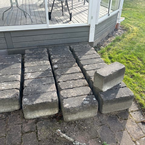 Ett antal sprängstenar ca 20x40 cm varierande storlekar kan bli en fin stenmur eller mellan växter i ett stenparti