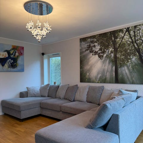 Soffan är rymlig, bekväm och passar perfekt i vardagsrum.