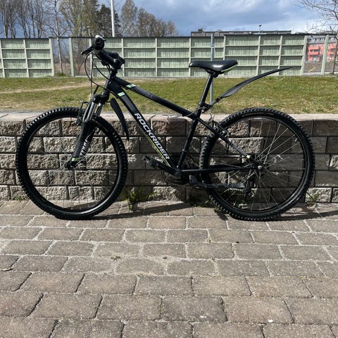 MTB barncykel med 24" hjul och grova däck. Utrustad med 1x8 Shimano Altus som är steget bättre än Shimano Torney som sitter på billigare cyklar. Spakväxel som är en fördel jämfört med vridväxel. Stöd följer med. Knappt använd då sonen växte snabbare än väntat. Vikt 10.1Kg. Decathlons finare variant av MTB för barn.