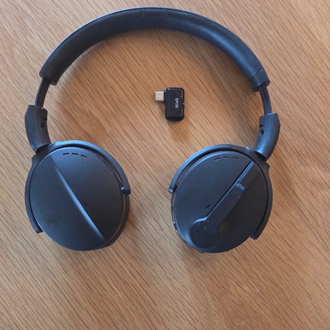 Svarta on-ear hörlurar från INF/Monster med vadderad bygel och mjuka kåpor. Har kabelanslutning på ena sidan och justerbar passform.