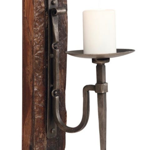 Passar till smalare blockljus men jag hade inga som passade så visar med värmeljus. Hela men med repor, märken och färgskav.