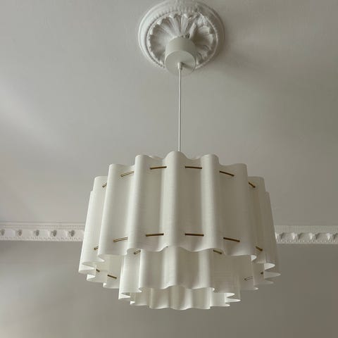 Stilren talklampa i tyg inklusive textilsladd. Komplett med elkontakt och kåpa.