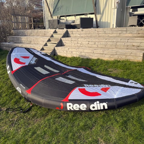 Grym vinge för vind ca 8-13m/s (beror på vilken bräda och Foil man har såklar). Tar höj bra och har bra fart. Mjuka handtag. Leach och väska medföljer. En liten tejpad lagning som syns på bilden, inget som påverkar funktionen.