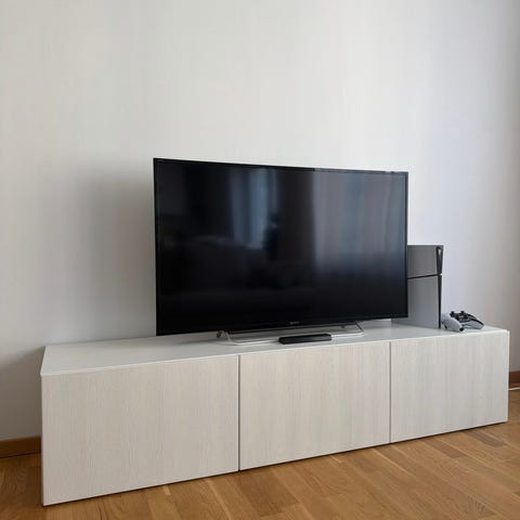 Tv bench with doors, black/brown Hedeviken oak veneer