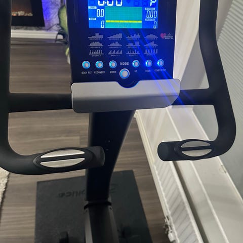 Cykeln är i nästan nyskick, se bild. Väldigt lite använd och fungerar perfekt. Stabil, tyst och smidig – perfekt för hemmaträning.