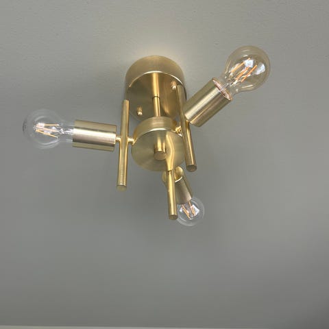 Comet taklampa är en vacker pendel designad av Anna Andersson från det svenska varumärket Globen Lighting. Taklampan har sex armar i borstad mässing och med dess unika form ger den ett rått och minimalistiskt intryck. Det är en lampa som har förmågan att förändra ett rums karaktär och som kastar ett jämnt ljus i rummet. Lampan levereras med en 1,2 meter lång vit textilkabel med vajer. Komet taklampa finns i två olika färger: svart och mässing.