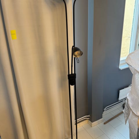Svart golvlampa med läslampa