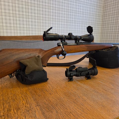 Skjuter jättebra. Använt till jakt och därmed inte skjutet en massa på bana.