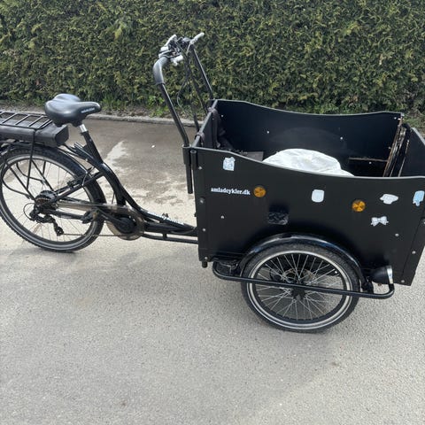 Säljer vår lådcykel som vi köpte begagnad i höstas (2025). Vi köpte cykeln för att skjutsa vår hund i, men hon vägrar åka den, tyvärr.. Vi har därför bara använt den ett fåtal gånger och under vintern har den stått inne (även tidigare ägare har haft den inne under vintern).