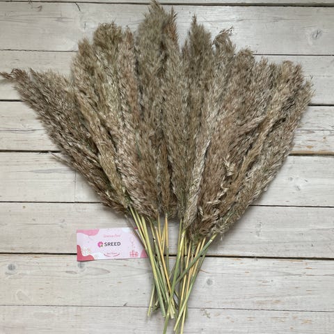 Dekorationsgräs i en hög svart vas, pampasstil.