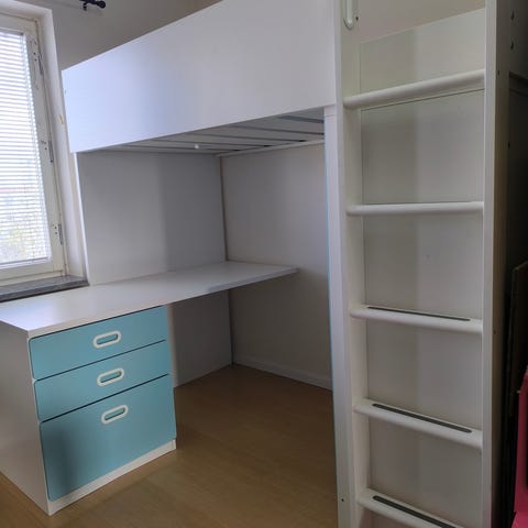 Säljer en stadig och fin våningssäng i måtten 90x200 cm. En perfekt och yteffektiv säng för barnrummet.
