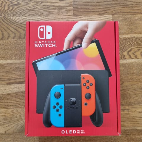 Nintendo Switch Joy-Con handkontroller i blått och orange. Originalkartong med handledsremmar och allt som syns på bilderna.