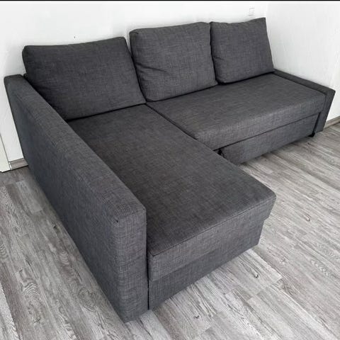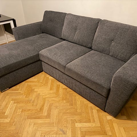 Säljer vår bäddsoffa pga utlandsflytt. Bäddmadrass från Wonderland medföljer (se bild). Förvaring under schäslongen.