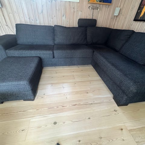 Manchester hörnsoffa med divan från ”Scapa”. Soffans divandel är vändbr och kan placeras antigen till höger eller till vänster. Mått: 330/260/140 cm.