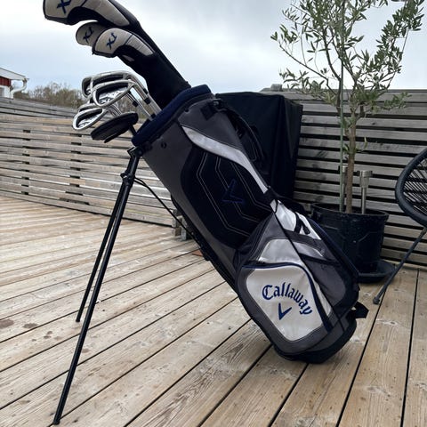 Bagen har 6-vägs fullängdsdivider för bra ordning på klubborna, flera praktiska fickor, velourfodrat värdefack samt avtagbar ergonomisk bärrem. Regnskydd ingår.