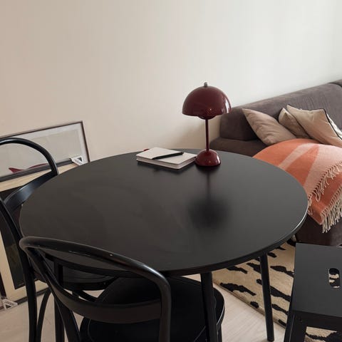 Tyvärr en del (obs ytliga) skador på själva bordsskivan, men det går säkert att putsa till/måla.