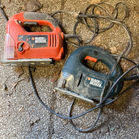 Black & Decker sticksåg i orange med sladd. Ligger smidigt i handen och har platt sula för raka snitt.