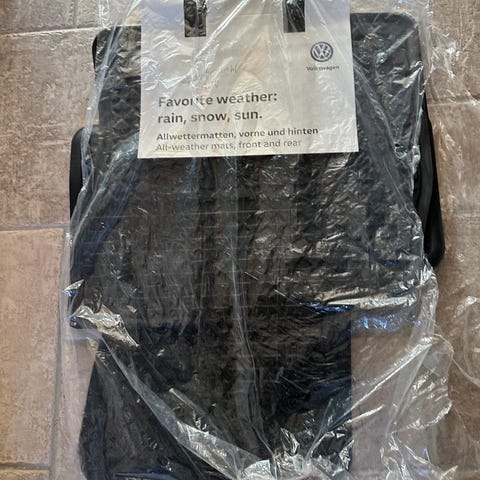 Svarta golvmattor till bil från MINI, allvädersmattor för fram och bak. Ligger fortfarande i plast med upphängning och etiketter kvar.