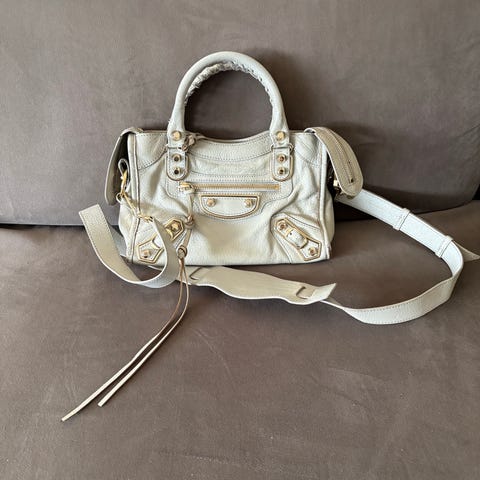 Balenciaga axelremsväska i läder beige kvinna