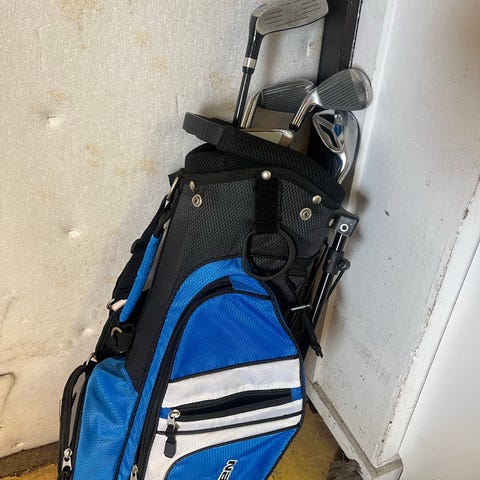 Set med flera golfklubbor, bland annat King Cobra ld driver. Titleist 762 järn set, fairway driver, Spalding putter samt en trä 7.